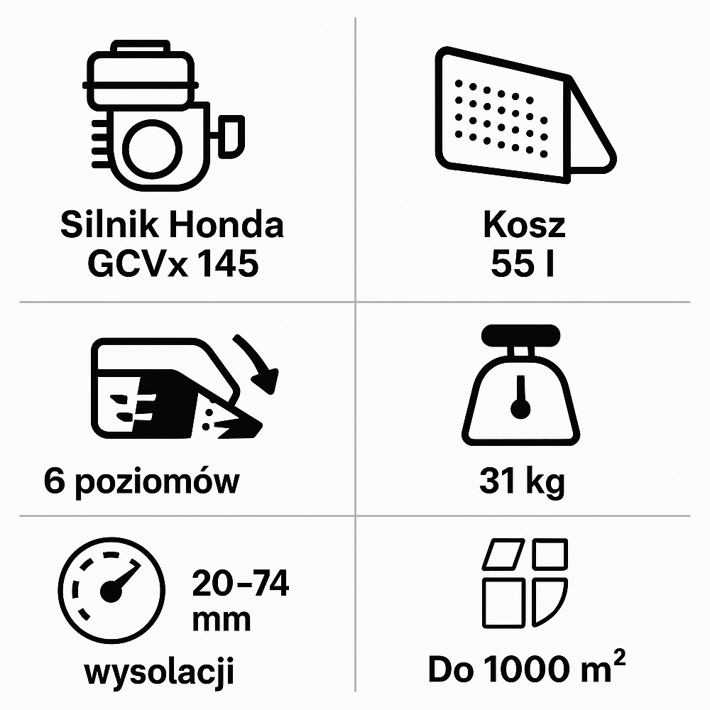 Kosiarka Honda HRG 466 C1 SKEP to solidny i wydajny model spalinowy, idealny do pielęgnacji średnich i dużych trawników. Wyposażona jest w mocny, niezawodny silnik Honda GCVx, który zapewnia płynną pracę i oszczędność paliwa. + Dodatkowy, oryginalny olej Honda 10W30 olej na wymianę