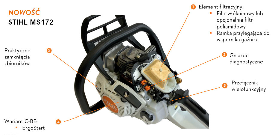 Stihl MS 172 to lekka i wydajna pilarka spalinowa, idealna do drobnych prac przydomowych o mocy 1,4 KW/1,9 KM. Wyposażona w silnik 2-MIX, system antywibracyjny i łatwy rozruch, zapewnia komfort i efektywność cięcia.